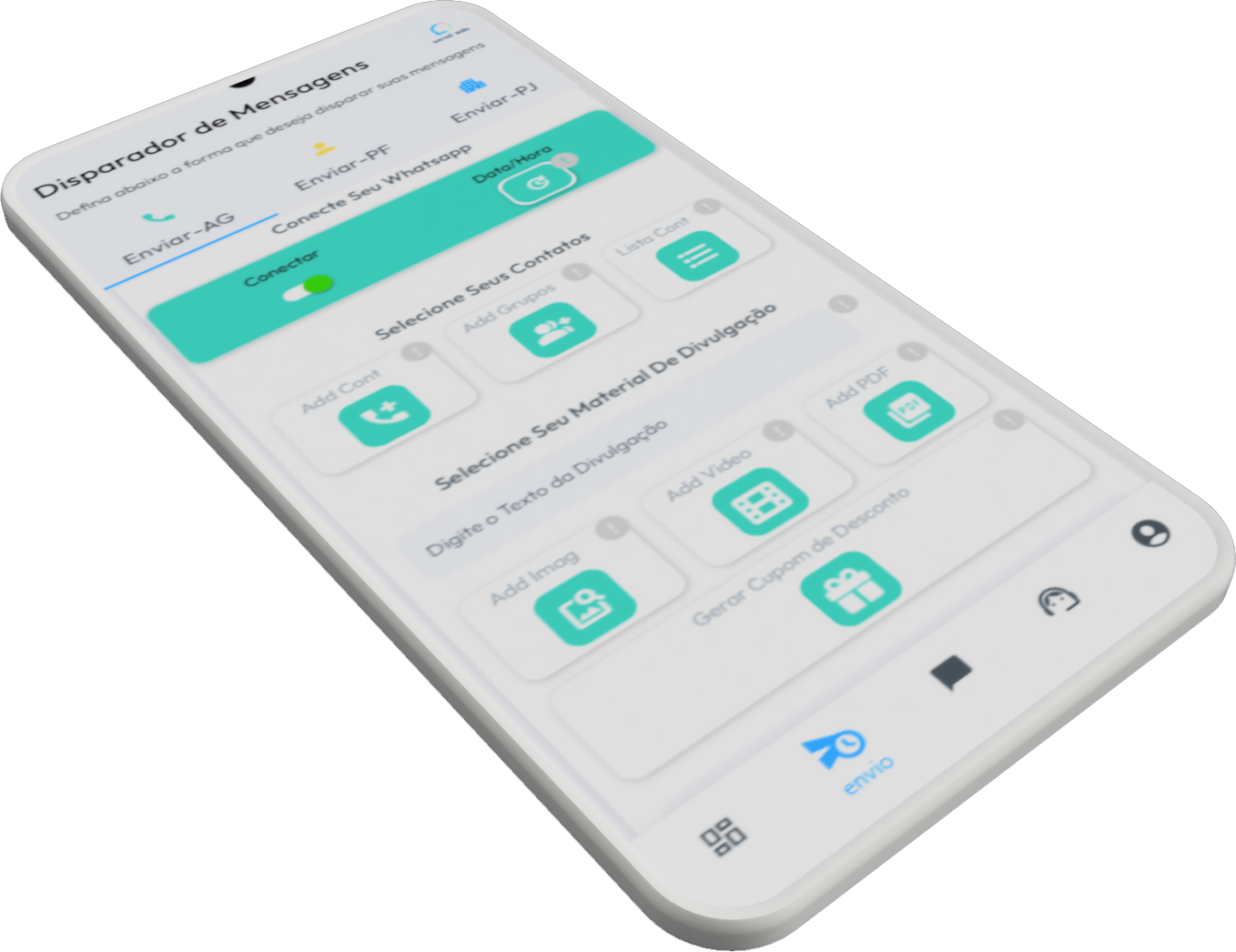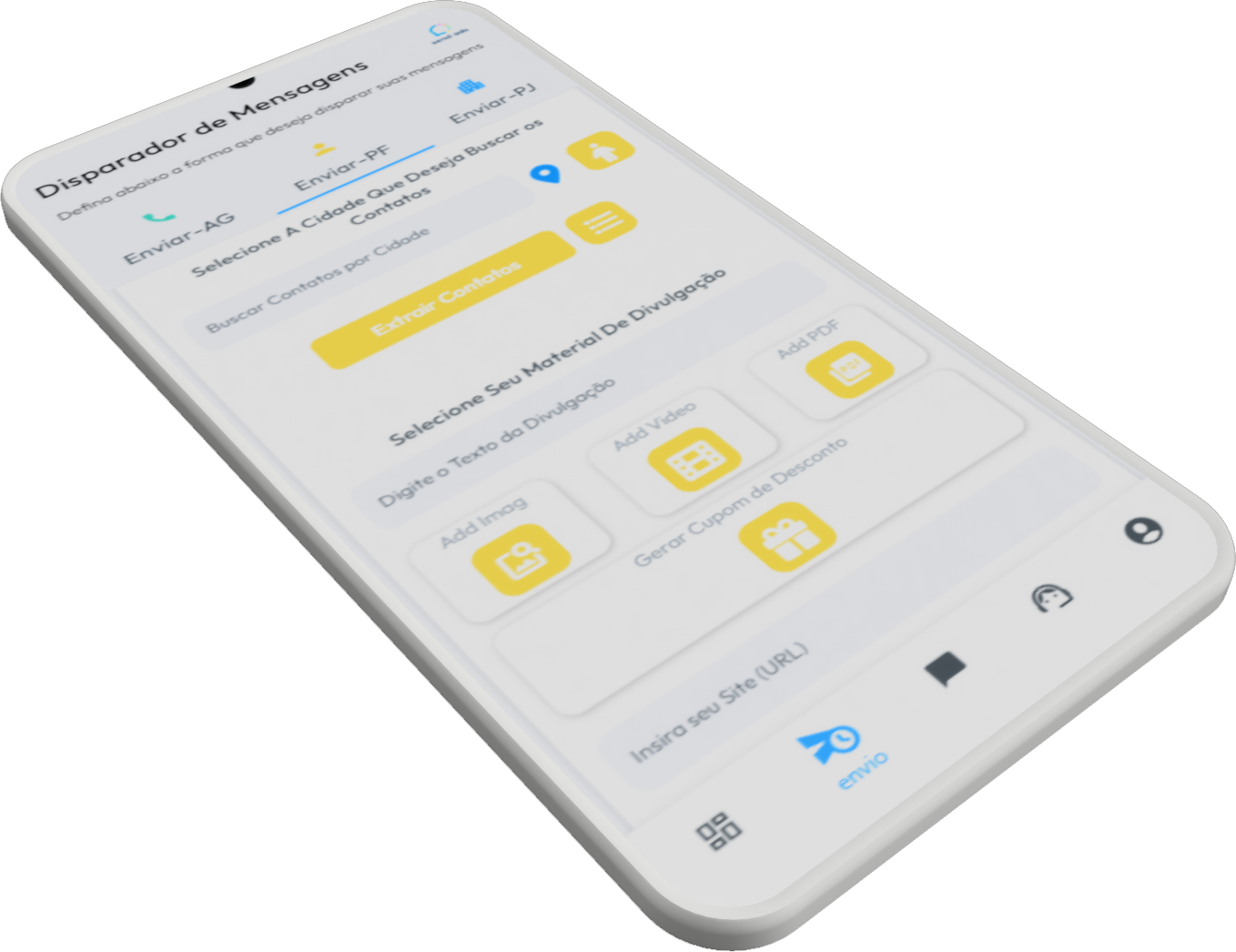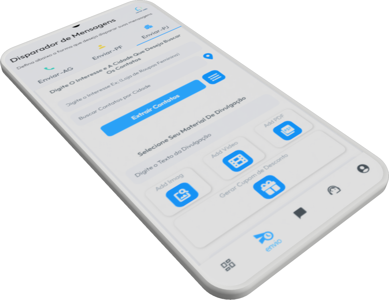 Nosso sistema de Disparo Automático de Mensagens no WhatsApp é uma ferramenta completa para melhorar a comunicação com seus clientes. Com ele, você pode enviar mensagens personalizadas para sua lista de contatos, agendar mensagens em horários específicos, gerar textos persuasivos automaticamente, gerar cupons de desconto diretamente na plataforma e acompanhar o desempenho de suas campanhas em tempo real através do nosso dashboard intuitivo. E não se preocupe com a criação de uma lista de contatos, nós fornecemos um banco de dados de contatos de pessoas físicas e jurídicas para você enviar suas mensagens. É uma solução poderosa para promover sua marca e aumentar suas vendas de forma rápida e eficiente. Experimente agora mesmo!