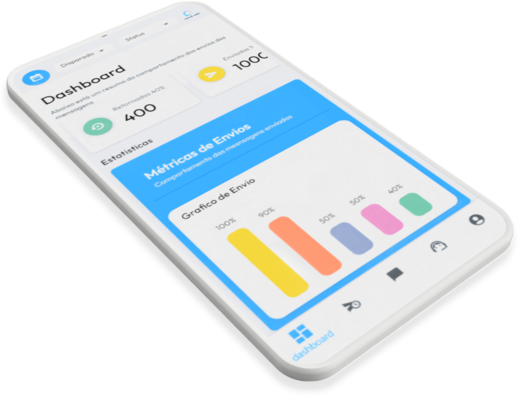 - Acompanhe suas mensagens enviadas, visualizadas e recebidas em nosso dashboard